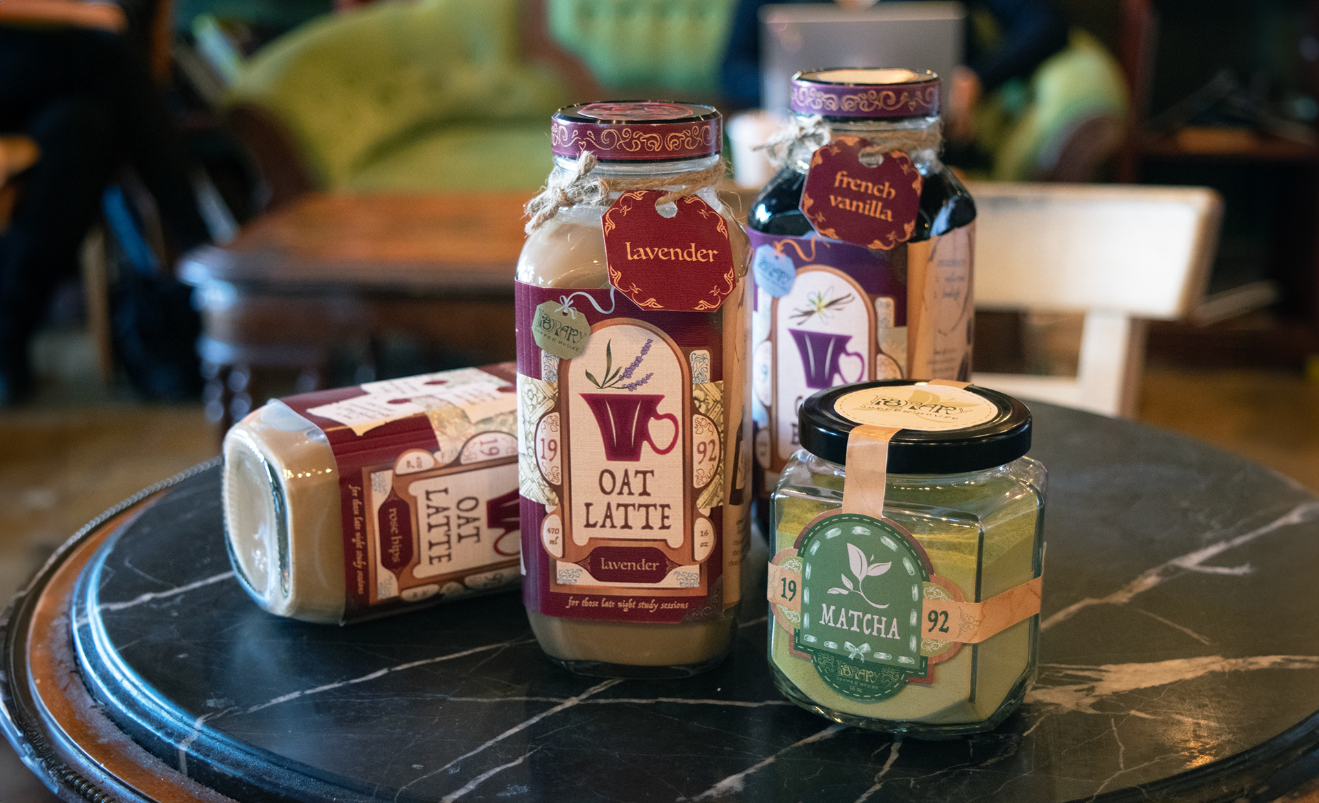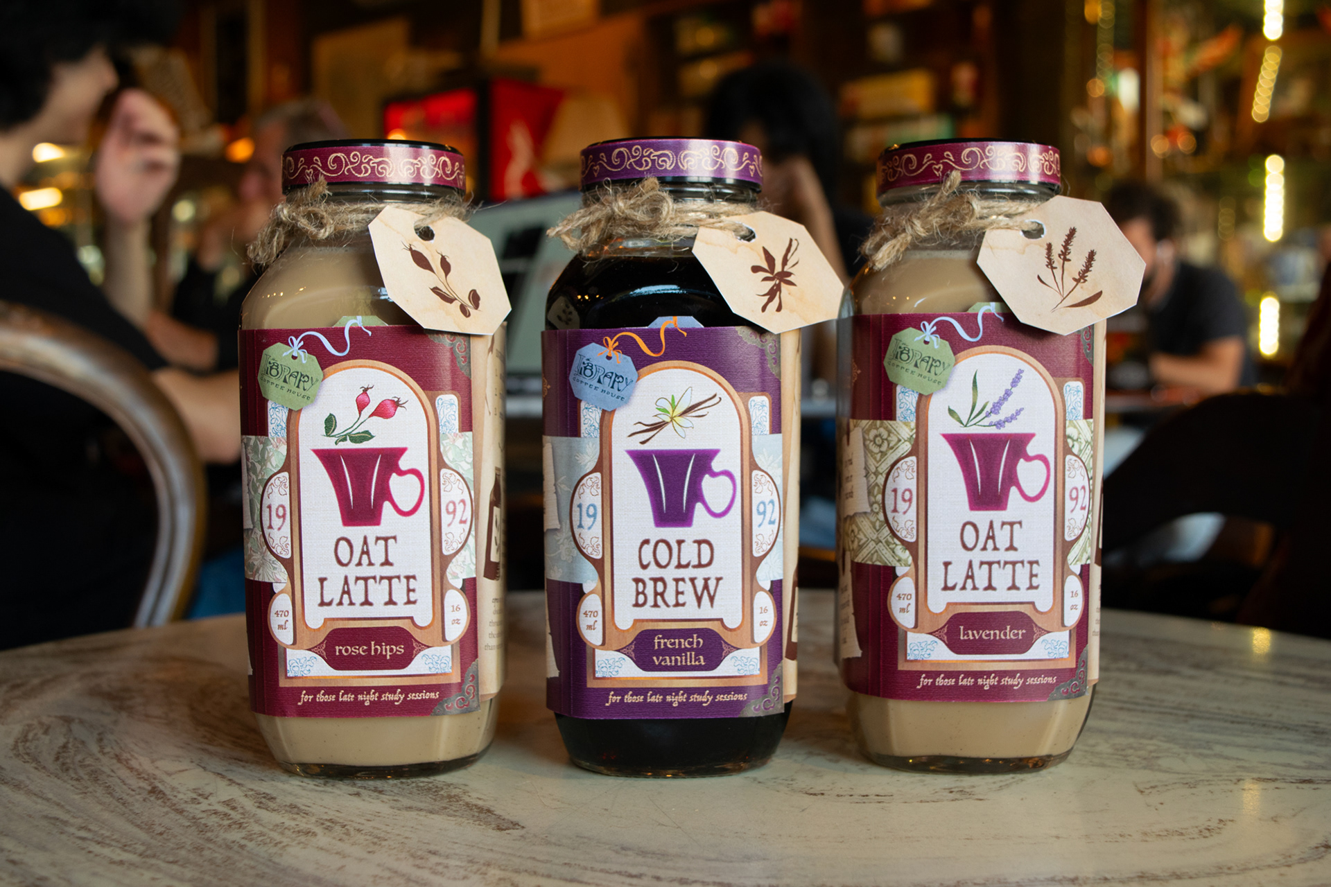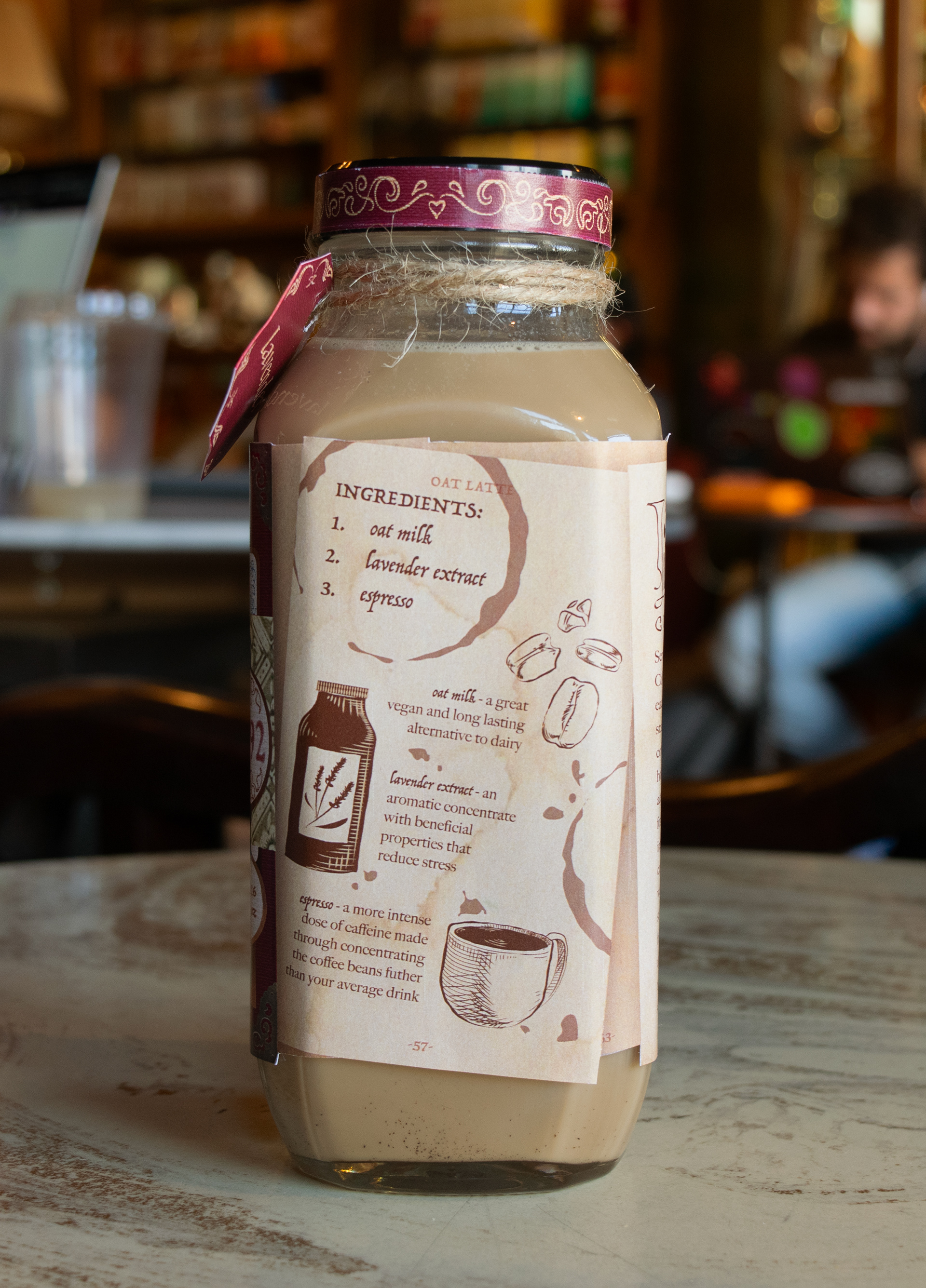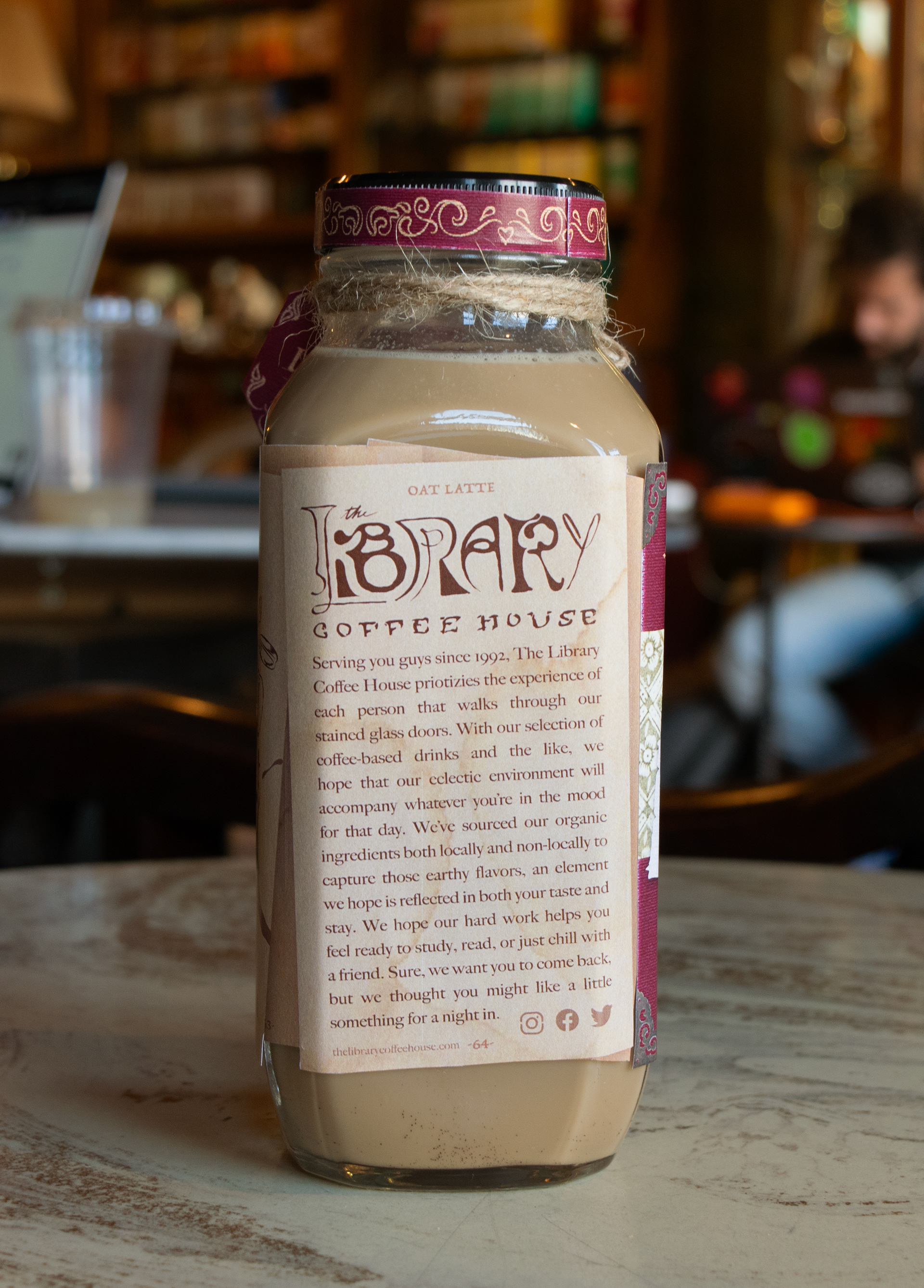 The Library Coffee House is a local spot in Long Beach, CA that is often remembered for its eclectic atmosphere, defined by dim lighting, mismatched art, vintage furniture, and an envelopment of books. Based on this tailored look and feel, this rebranding and in-house beverages convey the experience of meeting with friends, doing creative work, or taking the time reread a favorite book in this nastolgic space. Included are elements like ragged edges, paper stained with coffee, collaged patterns and textiles to establish the feel of a something well-loved. The redesigned logo follows the same direction with custom hand-lettering to reflect a period before standardized printing and the personalized nature of The Library Coffee House.