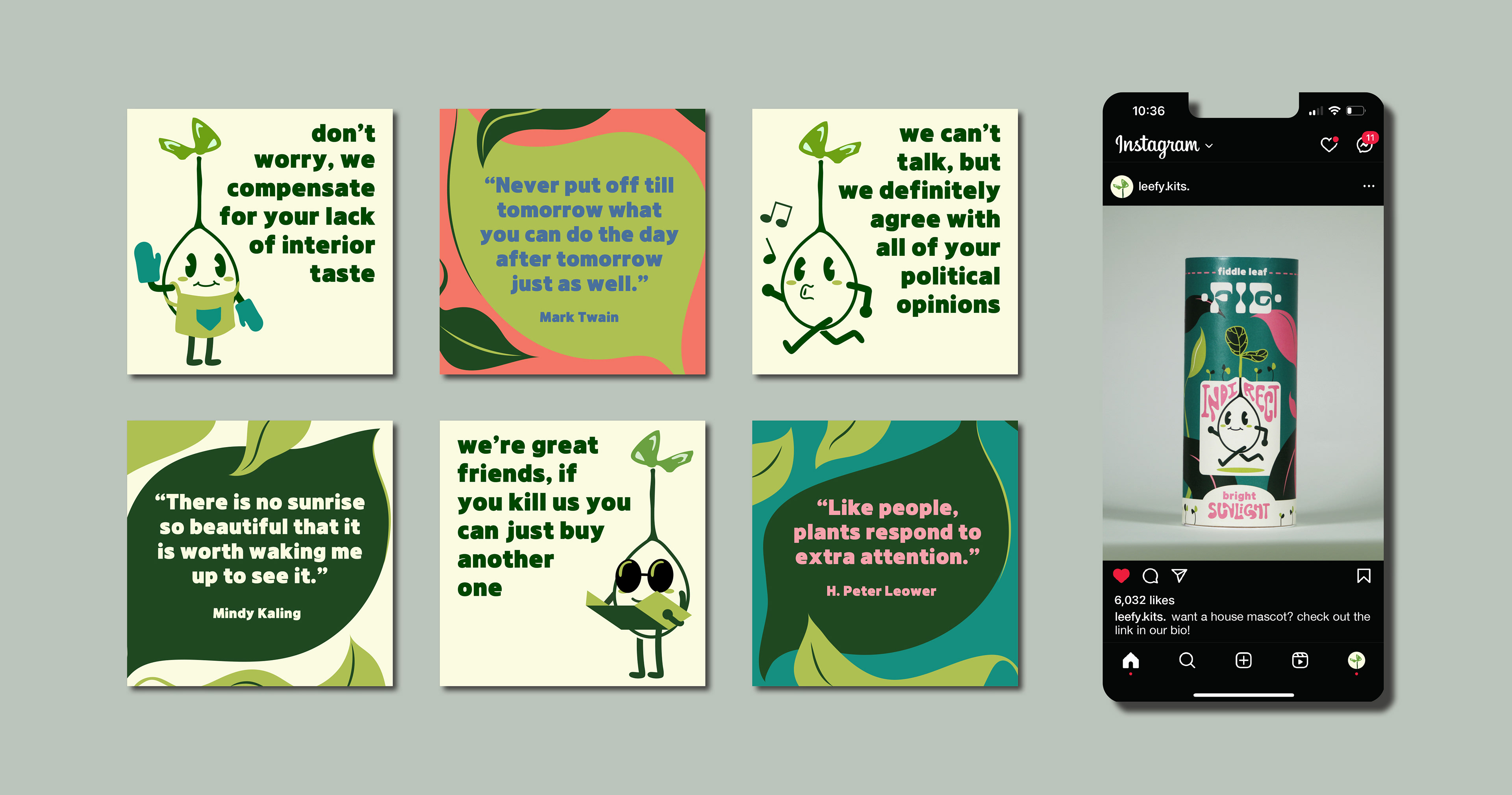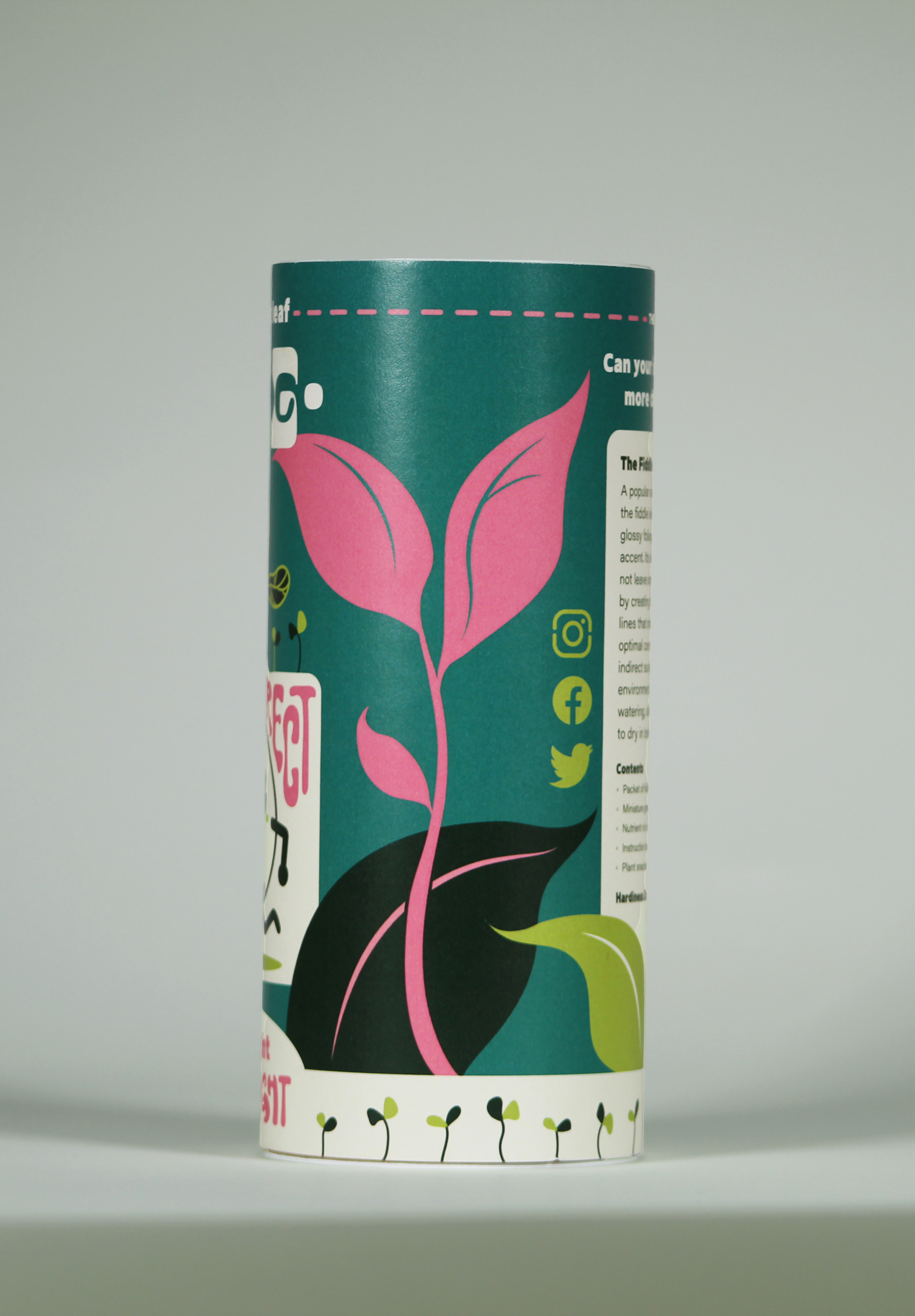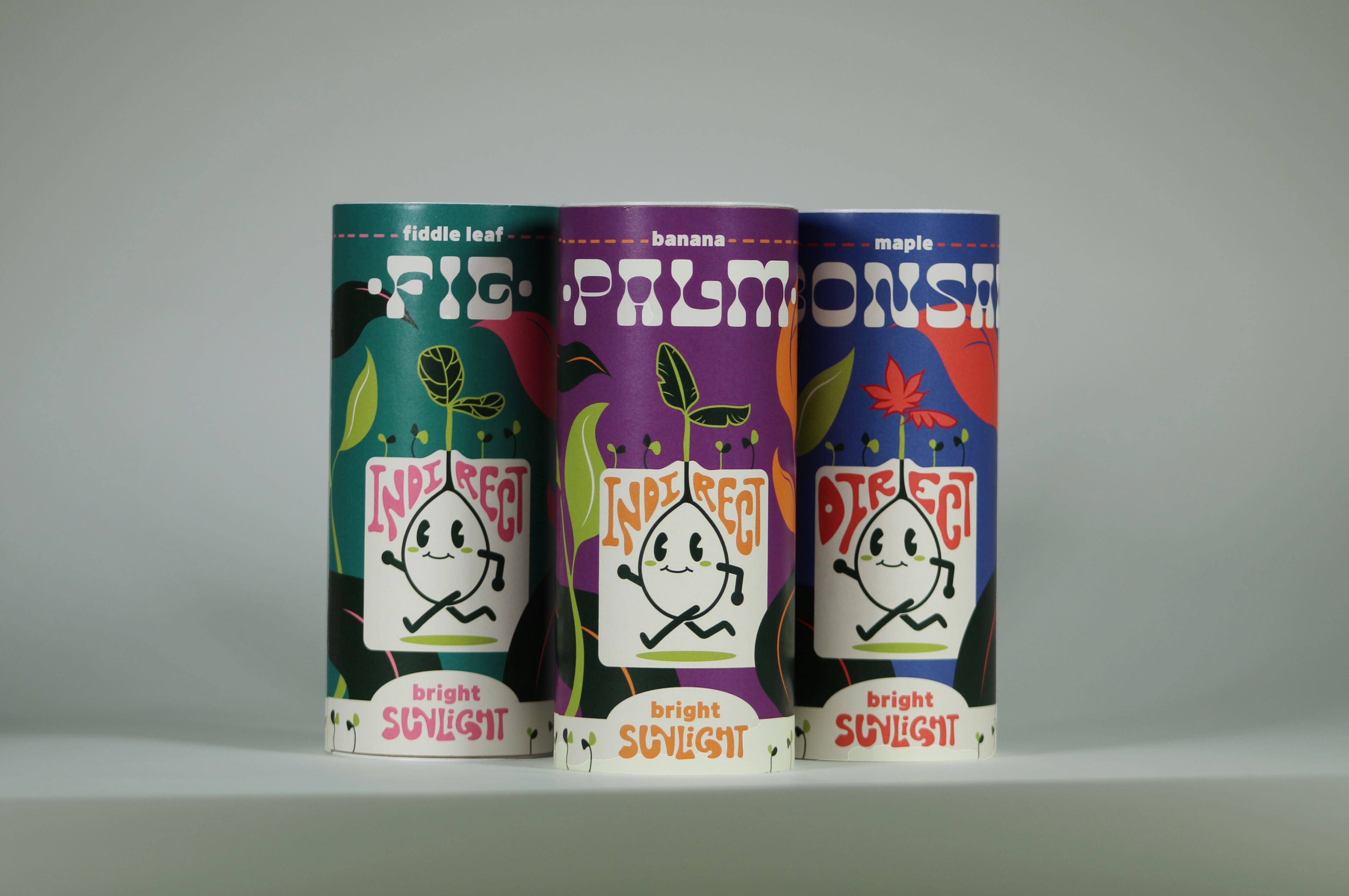 Based on popular house plants, this germination kit emphasizes the idea of growth through playful colors, seedlings, and the mascot, “Sprout.” Designed to be inviting and nostalgic, the use of house plants reaches many of those who live in cities, apartments, and spaces without gardens. This makes tree germination and the process of nurturing something from seed much more accessible to people regardless of where they live and what their space looks like. Taking inspiration from retro illustration styles and using hand-lettering in the product description further emphasizes a warm, playful tone through familiar charm and organic form.